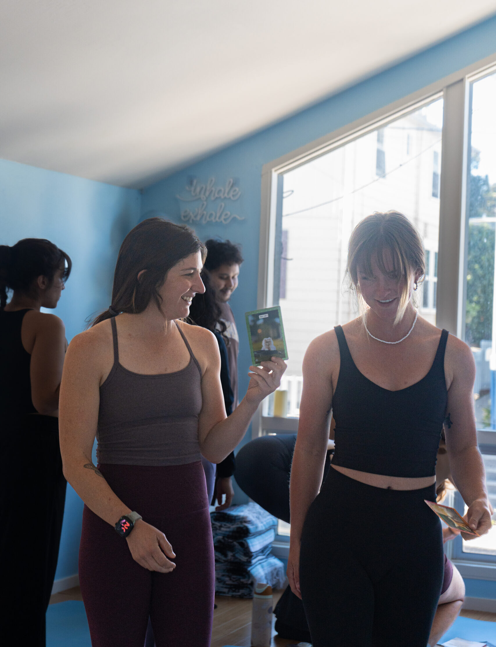 Feel free to bring the following; a reusable water bottle, a yoga mat, a hair tie, and a sweat towel/mat towel. Anything that you don’t have you can either rent or buy with us!